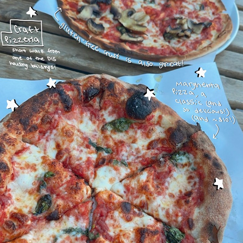 - Delicious pizza at Craft Pizzeria, which is a very short walk from one of the DIS housing buildings!