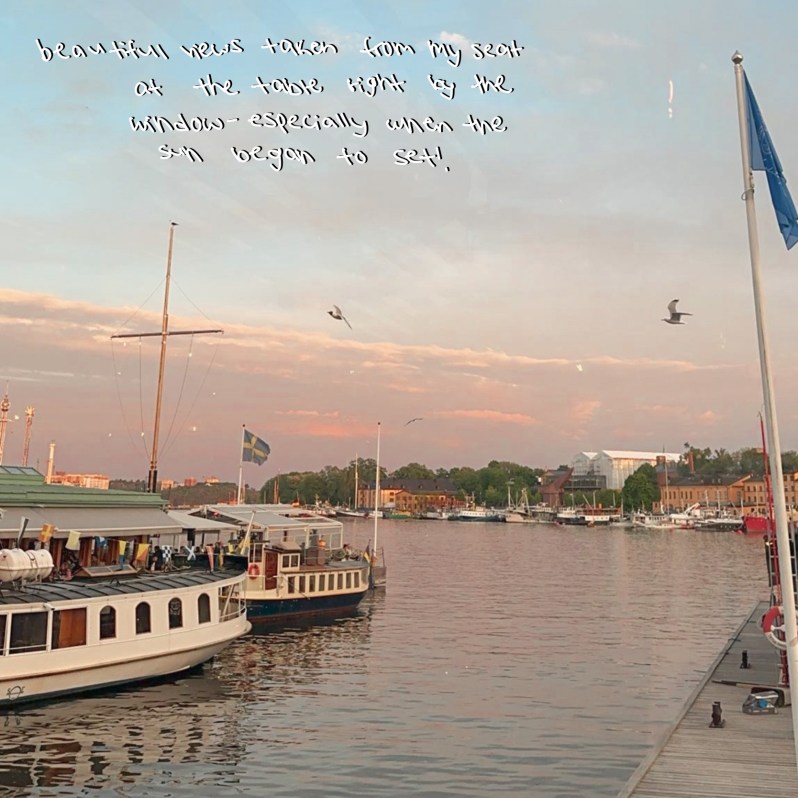 I’ve spent less than a week in Sweden so far, but am already loving it! The city is gorgeous, home to endless cafes and cuisines to try, and always has a breeze from being surrounded by water. So far one of my favorite things to do has been getting dinner with friends at restaurants on or by the water — there is no shortage of them!